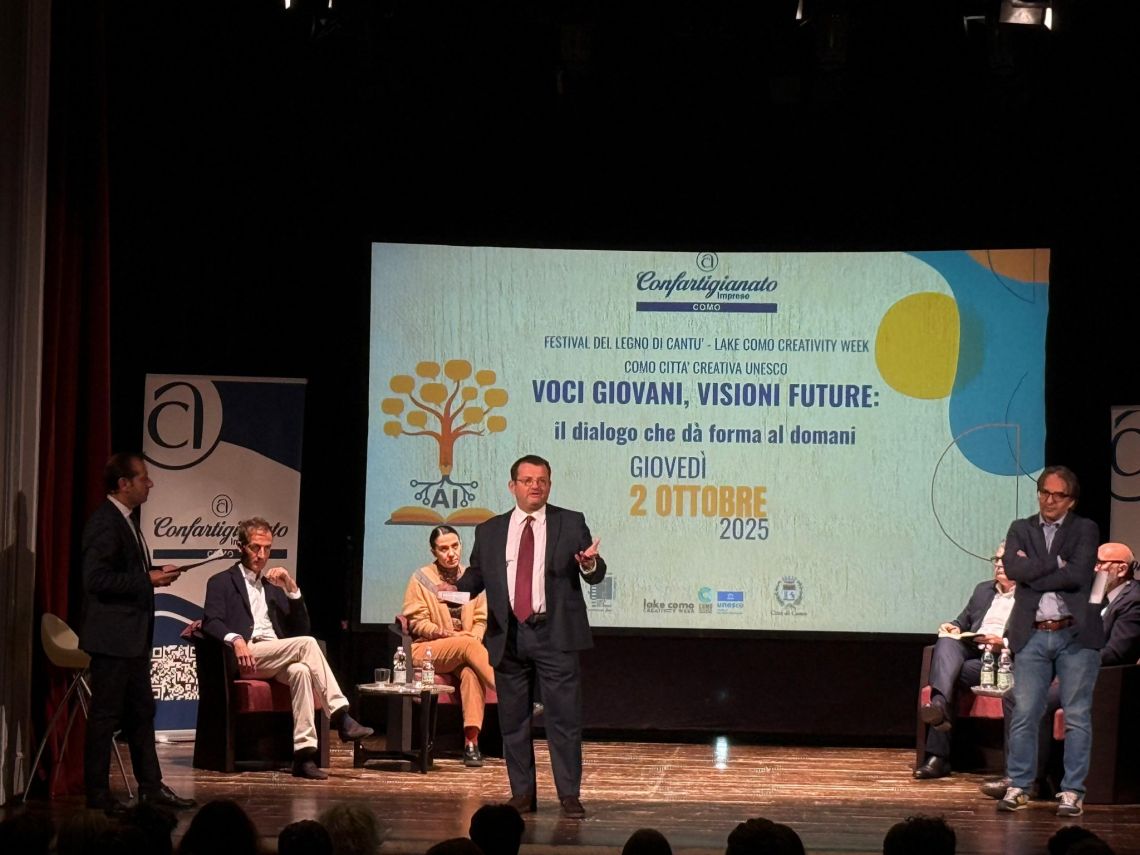 Giovedì 2 ottobre, presso il Teatro San Teodoro di Cantù, si è svolto l’evento “Voci giovani, visioni future: il dialogo che dà forma al domani”, promosso da Confartigianato Imprese Como – Settore Legno e Arredamento, all’interno del Festival del Legno Cantù e inserito nel cartellone della Lake Como Creativity Week.
